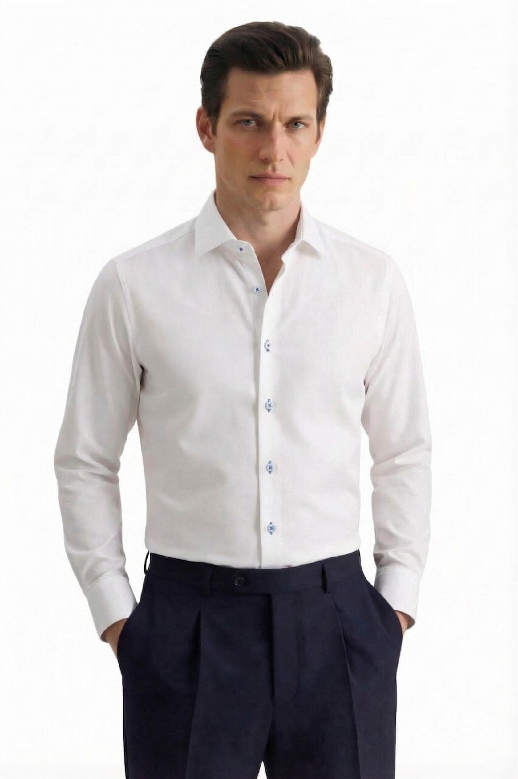 • Custom Fit, Классический воротник, Классический (на пуговице), Однотонный, Белый