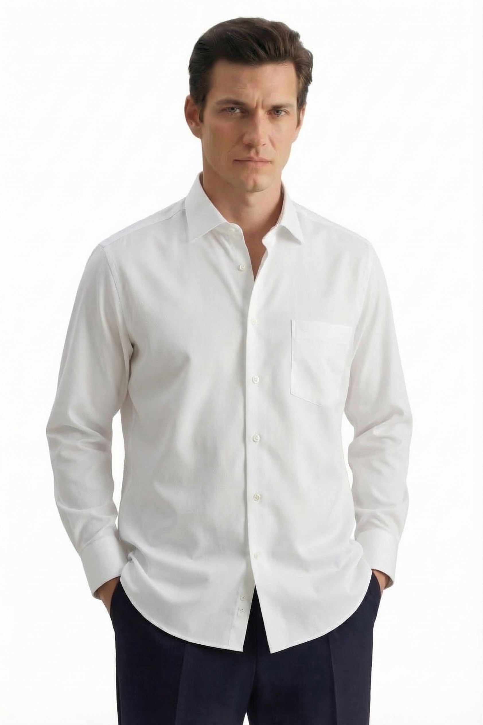• Custom Fit, Классический воротник, Классический (на пуговице), Однотонный, Белый
