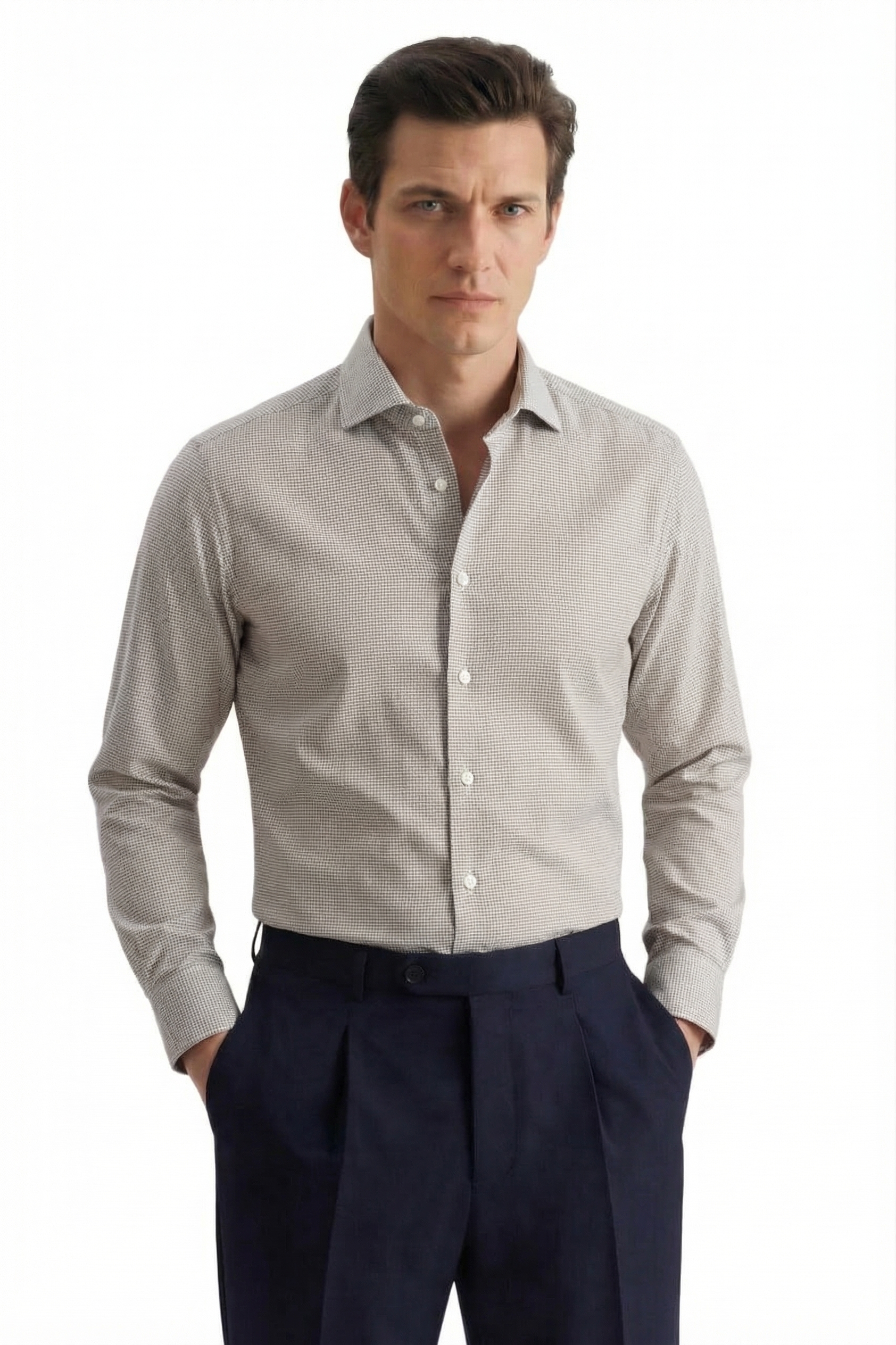 • Приталенный силуэт, Клетка, Серый