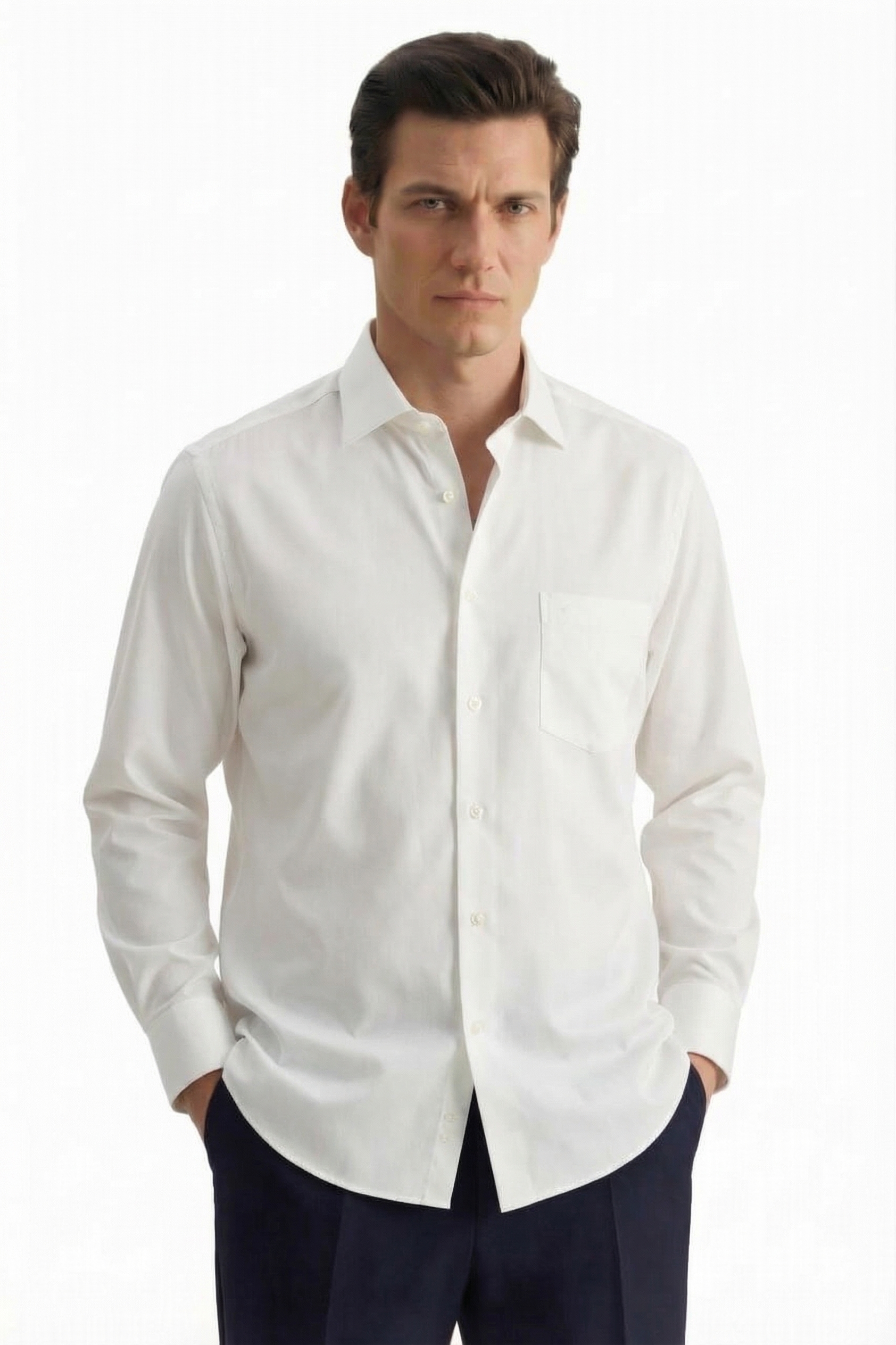 • Custom Fit, Классический воротник, Классический (на пуговице), Однотонный, Белый