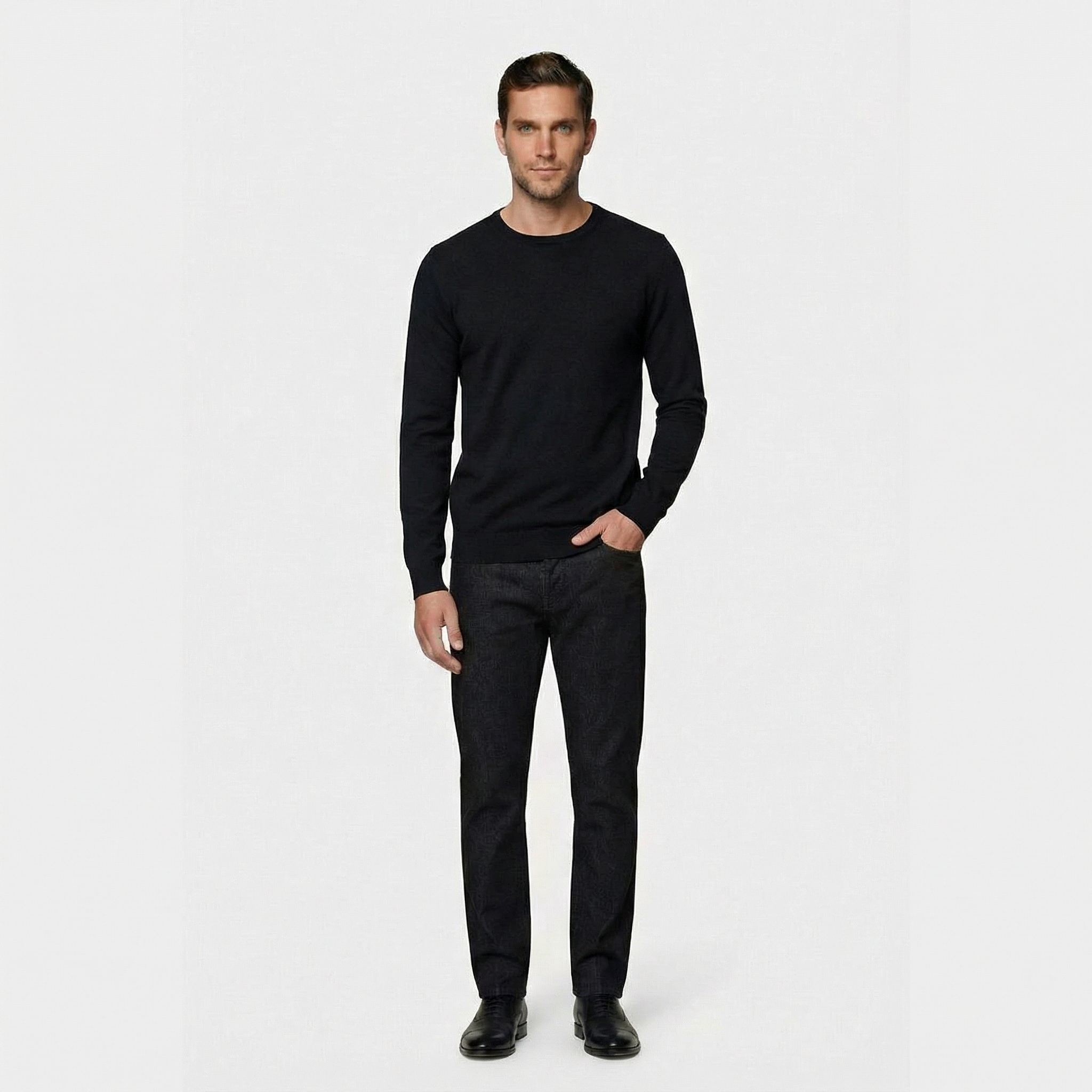• Прямой силуэт, О образный, Однотонный, Черный